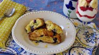 Not the lowest calorie scone out there but definitely one of the best! Fresh blueberries and heavy whipped cream are key. Double the batch and freeze half for a last minute treat!