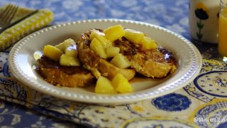 French toast with a tropical kick. Frozen pineapple and canned light coconut milk are available year-round too!