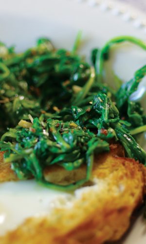 Sprinkle with goat cheese or serve as is with eggs of your choice – we like “egg in a nest.”