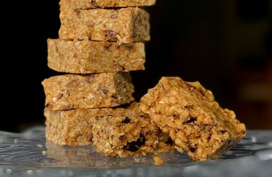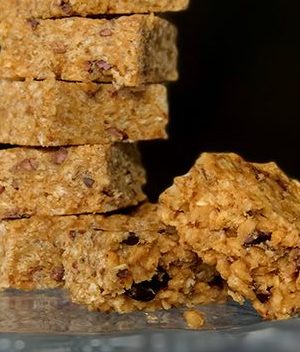 In a large bowl, combine brown rice, oats, cacao nibs, flaxseed.