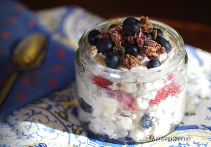 Combine all of the ingredients in a Tupperware with lid or large jar with lid. Let sit overnight in the refrigerator. Top with granola and/or fresh fruit like blueberries, raspberries, strawberries, or blackberries.