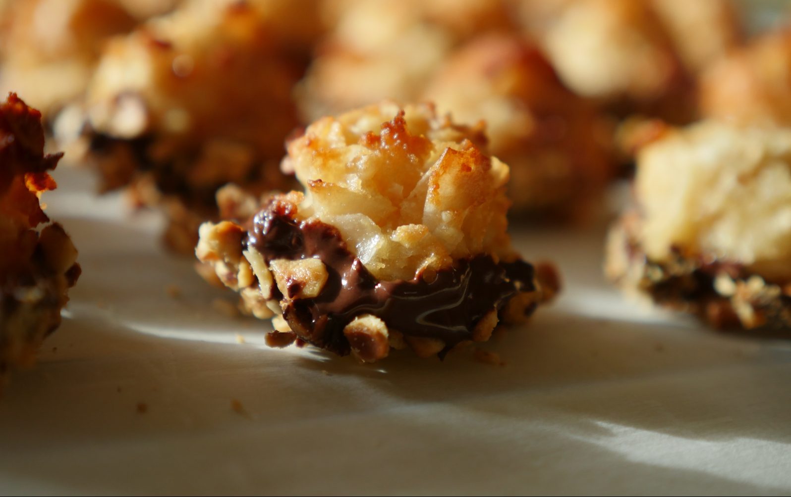 OPTION THREE: after dipping the macaroons in the chocolate, dip the bottom in a bowl containing 3/4 cups roasted, peeled, and chopped hazelnuts or slivered almonds.