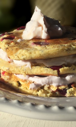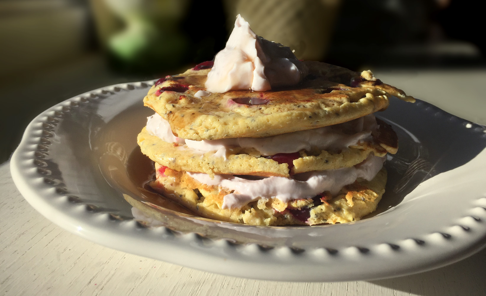 Layer the pancakes with yogurt for an extra boost of protein. Serve with maple syrup.