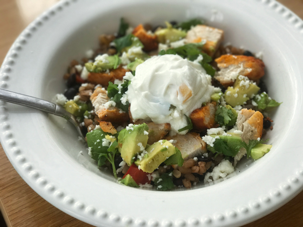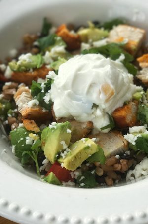 Serve with spicy black bean and farro, mango salsa, avocado, fresh cilantro, queso fresco and/or Siggi’s Mango & Jalapeño yogurt (this is a seasonal flavor).