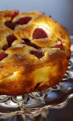 Gently fold in the raspberries doing your best not to break them apart. Alternative option to include the raspberries: layer the batter half way up the baking dish then add a layer of raspberries then cover with remaining batter.