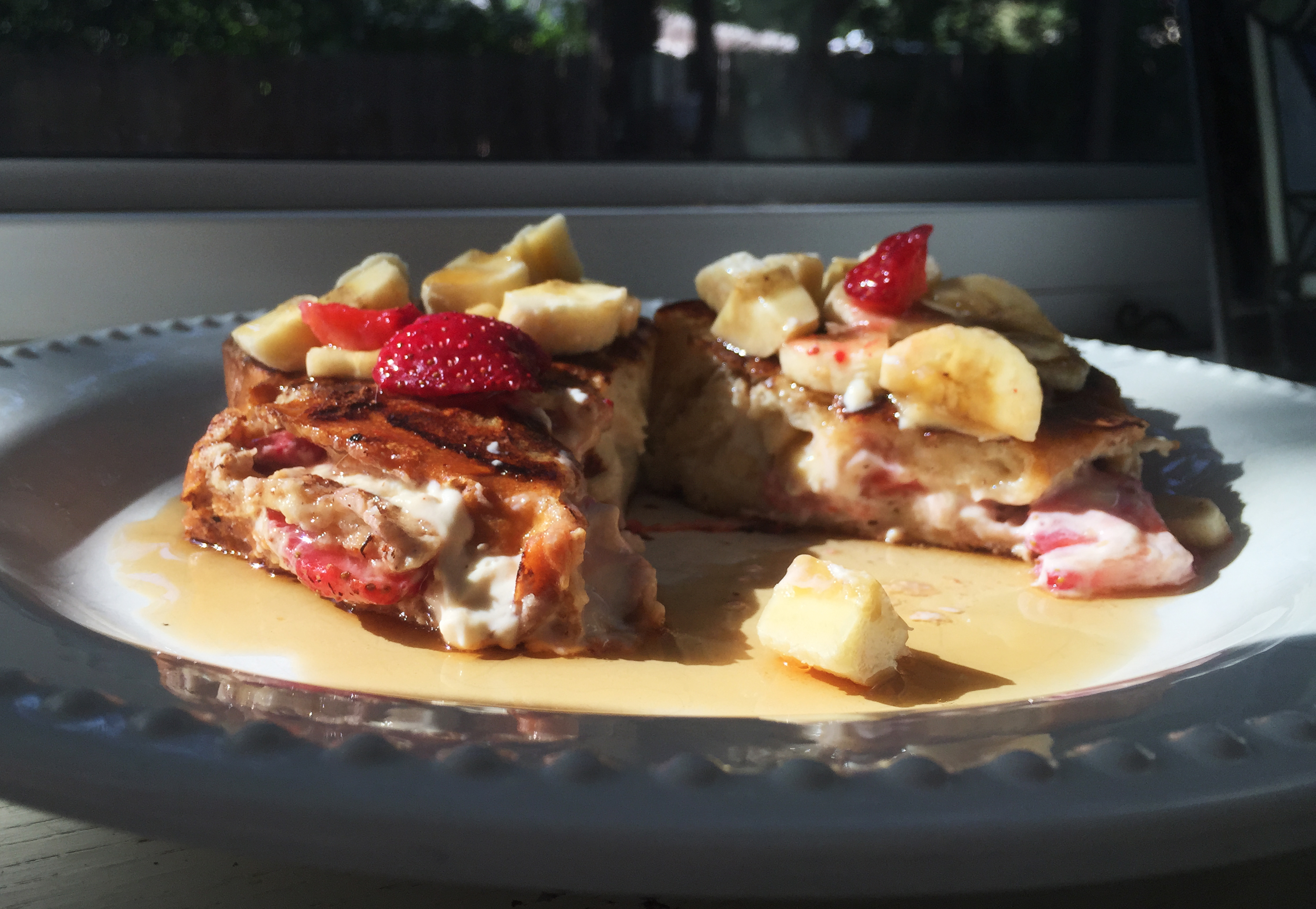 Mix together cream cheese, ricotta cheese, vanilla extract, and sugar until smooth. Transfer mixture into a sandwich baggie and cut off one corner, so the opening hole is approximately 1/4″ in diameter. Squeeze a line of filling in the bottom of the bread pocket. Add a few diced bananas and strawberries, layer with another squeeze of filling then repeat until the filling is gone.