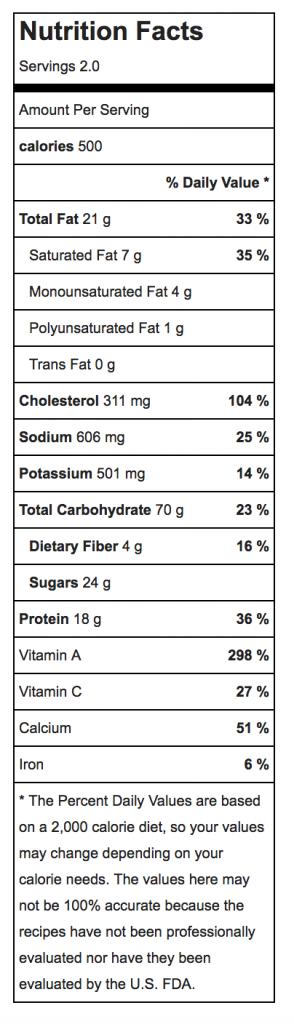 Serve with fruit and whipped cream topping, or yogurt with a honey drizzle, or maple syrup.